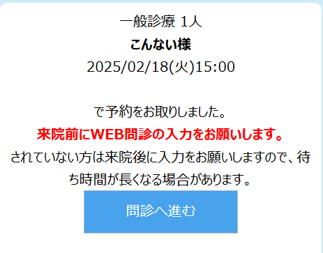 主治医ドットコムの予約登録完了画面にメルプWEB問診入力ボタンが表示されます。