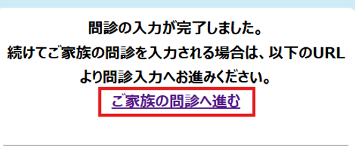 「ご家族の問診へ進む」ボタンより続けて問診の入力が可能です。