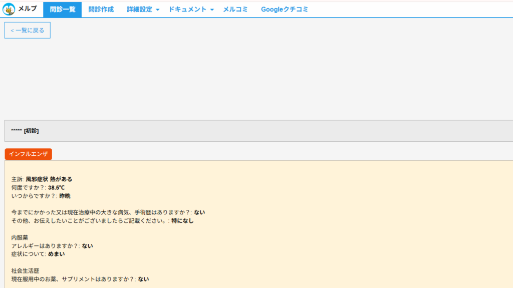 問診欄の〇をクリックするとメルプ詳細画面が開きます。