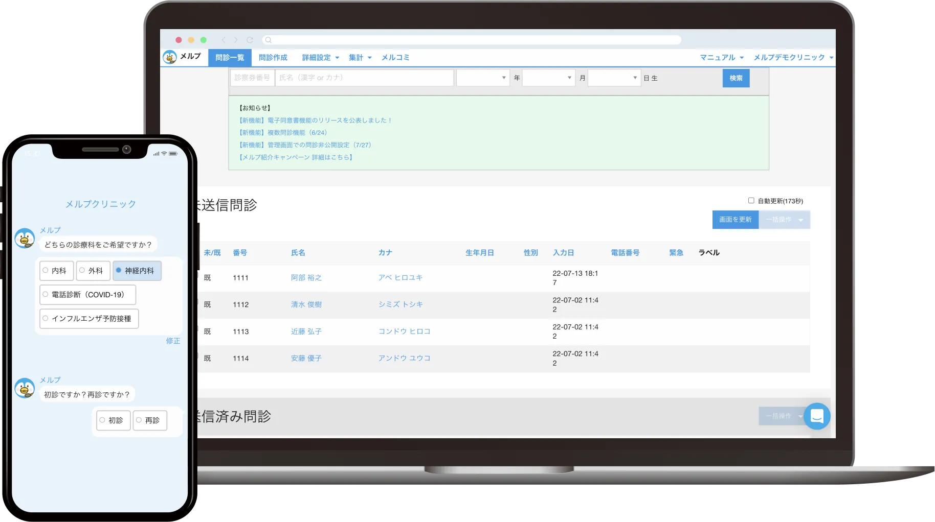 ユーザー満足度99%以上を獲得メルプWEB問診が