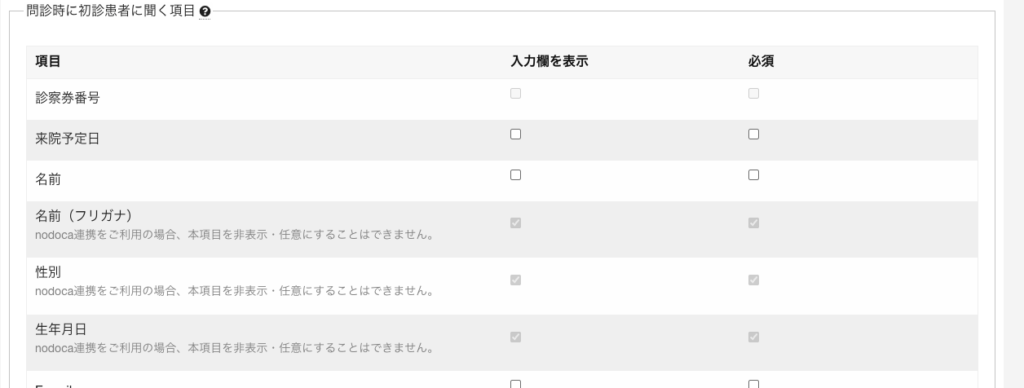 スタッフ問診の設定においても、nodoca連携用項目の設定が可能となっていましたが、スタッフ問診ではnodoca連携用項目の設定をできない対応を行いました。