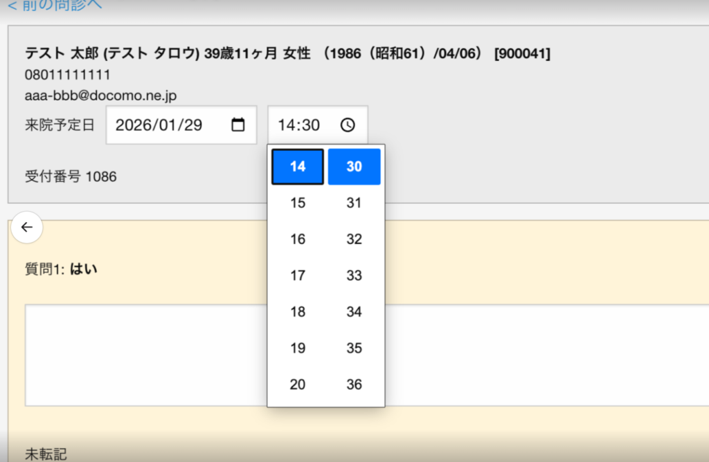 「問診設定」にて来院予定日の変更を可能にする設定が行えます。
