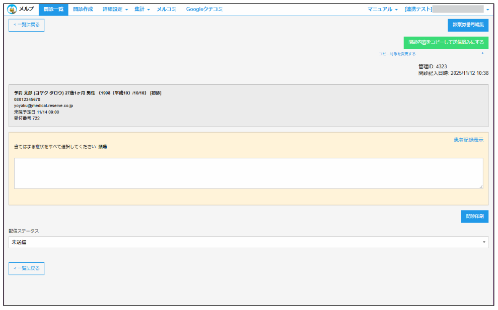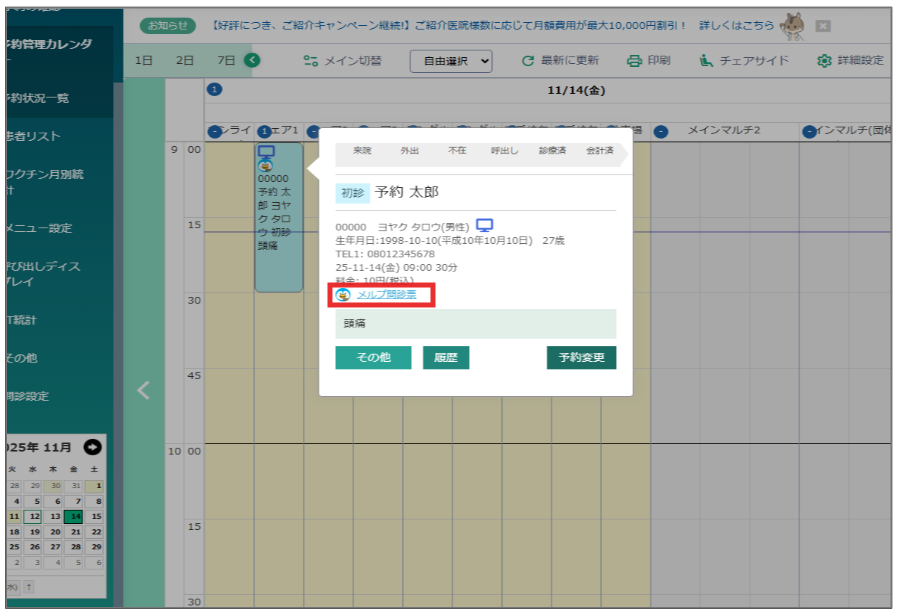 ※問診回答がない場合は、該当予約の箇所へはメルプアイコンは表示されません。